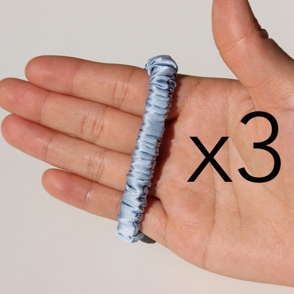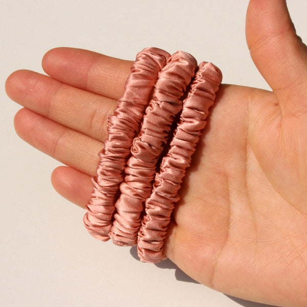 100% Pure Silk Skinnies Scrunchie Set Hair Bow Ties Ropes Bands Skinny Scrunchy Elastics Ponytail Holders for Women Girls