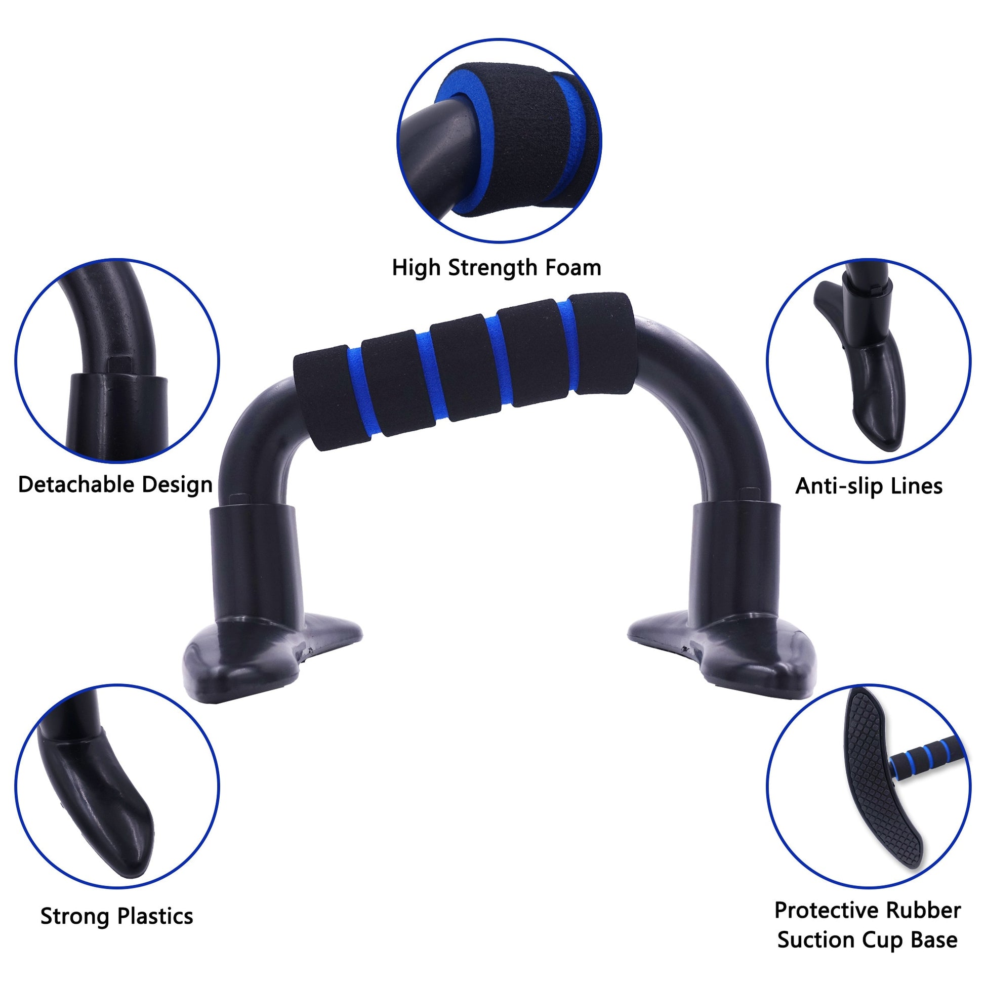 2.Excellent Push-up Support & Knee Protecting: The push-up bar of detachable design has anti-slip lines and protective rubber at the bottom. It mounts the ground and won’t slip easily. Push-up bar provides better support when doing push-ups.