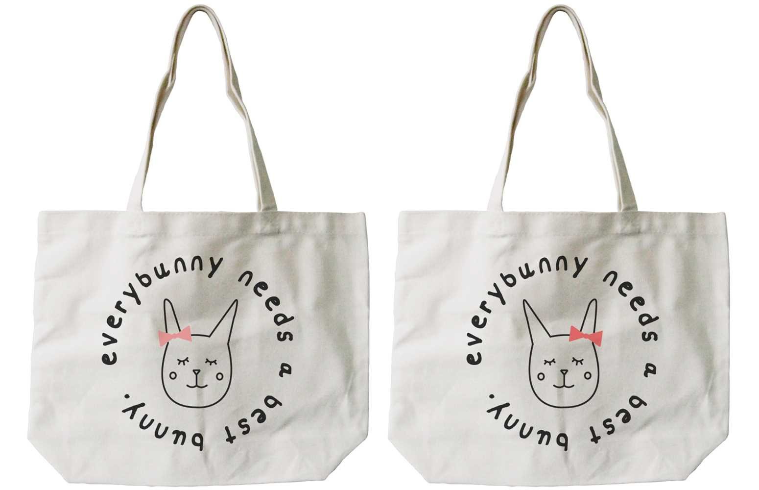BFF Matching Canvas Tote Bag Natural - Everybunny Needs a Best Bunny