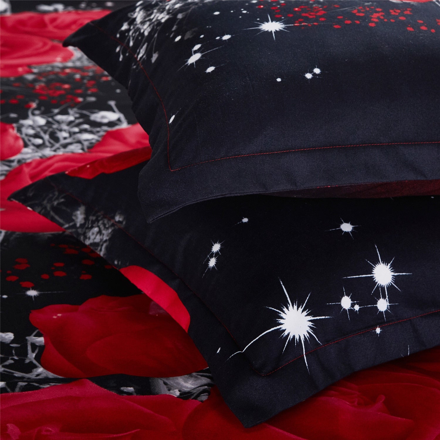 Big Red Flowers Rose Black Modern Luxury Comforter Bedding Set Fashion King Queen Twin Size Bed Linen Duvet Cover Sets Gift