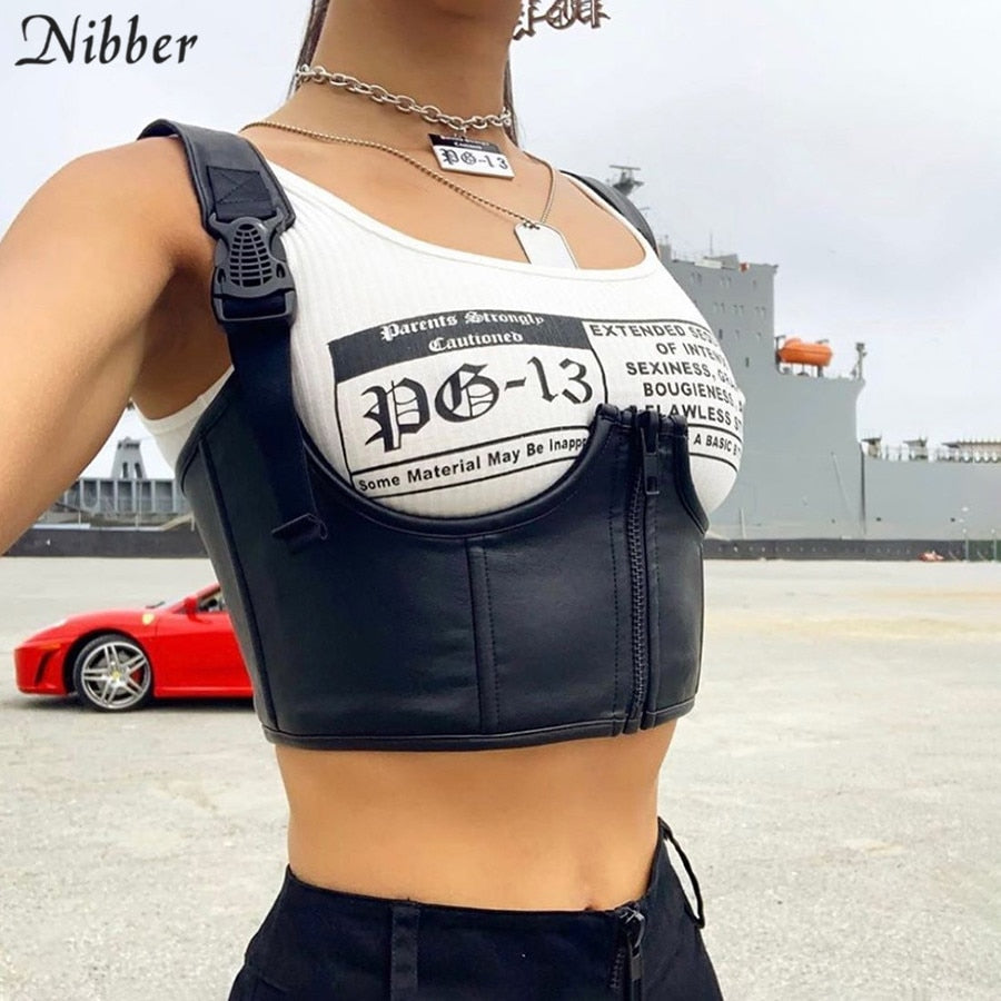 Black Basic Punk Cropped Tops