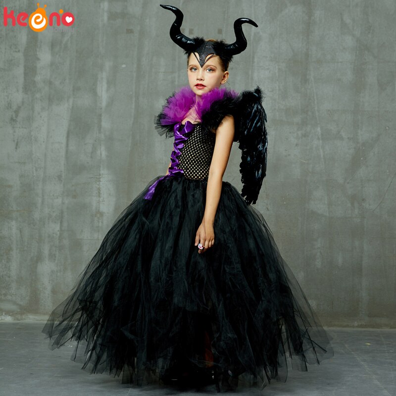 1. Maleficent Black Gown Tutu Dress with Big Horns and feather wings