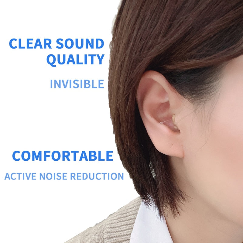 Digital Rechargeable CIC Hearing Aid Invisible Earbuds With Recharge Charger Case Hearing Aids 【Easy To Charge】The machine can work for more than 30 hours after charging for 2-3 hours. The portable charging box has the function of storing power, which can be used to charge two machines for 6-7 times.The Box Small and charge anywhere, anytime. 【Smart And High Quality】Advanced digital signal processing technology can intelligently reduce environmental noise and provide clear, high-quality natural sound. NOTE: This Sound Amplifier is suitable for people with mild to moderate hearing loss. 【Ergonomical Design】The ultra-compact rechargeable design allows you to wear it on your ears so that no one can easily see it and hide it perfectly.The color is close to the skin color of the human body, beautiful to wear; not easy to fall off, it's small and light-weight. 【More Comfortable 】 There are 3 pairs of soft eartips included (S/M/L) for various ear size, ensure hearing aids stay comfortably firm in place. Please use the correct wearing method to ensure that the earplugs closely match the ear canal to avoid sound feedback and howling.