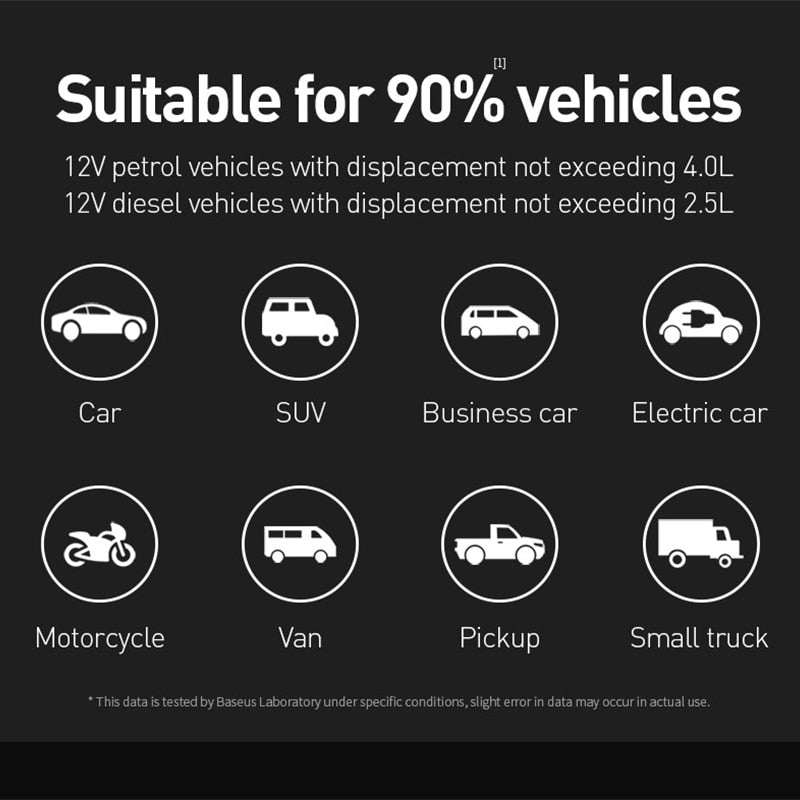 Suitable for 12V gasoline vehicles with displacement of less than 4L and 12V diesel vehicles with displacement of less than 2.5L Operation guide:1.Connect the smart clip to the EC5 interface of the startup power supply 2.Clamp the positive and negative anodes of the smart ignition clip onto the car battery respectively(Red:+.Black:-) 3.Start the car, and immediately remove the start-up power supply after the car starts Multi-mode, Emergency Lighting Long-press to start the lighting, multiple modes are available, which can be switched freely as required Upgraded Battery Pack for Stronger Performance Upgraded 4-series battery packs, more than 2 times stronger than traditional 3-series starting performance.8000mAh power capacity, the crown 3.0L naturally car can be started more that 4 times when fully charged Annular Charging Indicator Light, Clear Battery Level at a Glance Easy startup even under low temperature of -40℃. Power Supply of 5V/2.4A,it can as a power bank for electronic product. 4 indicators, one indicator indicates 25% of the power, Two indicates 50%, three indicates 75%, and four indicates 100%. It offers the best performance when it is fully charged or above 50%
