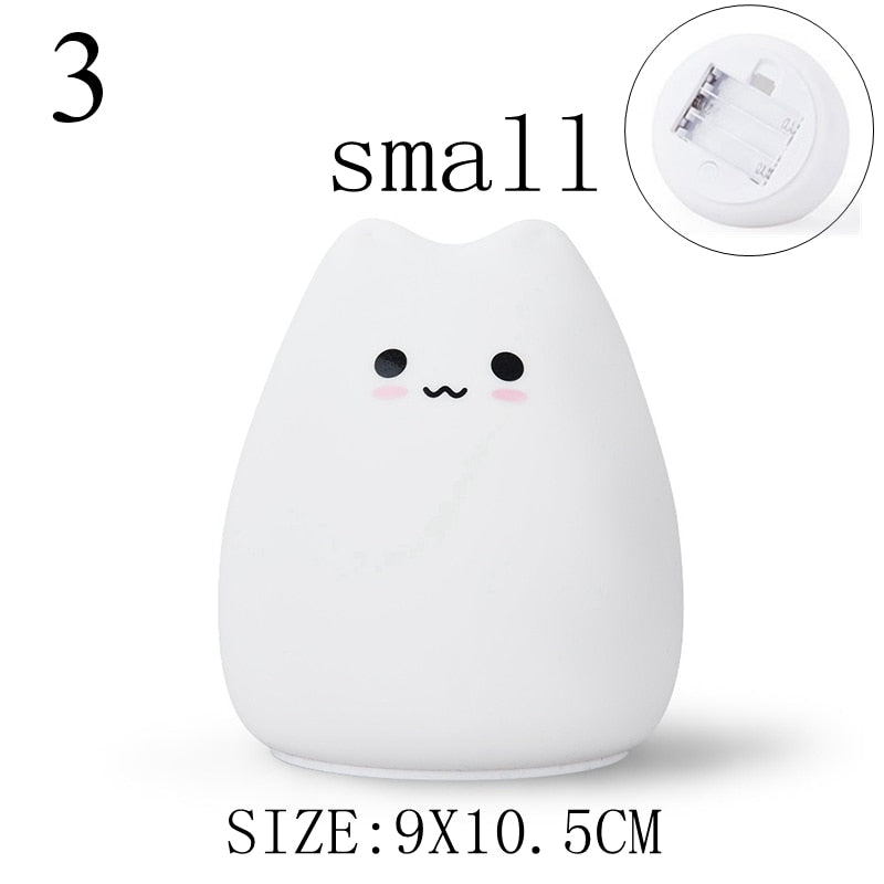 Product : cute night light Color : white Size : small (battery), Big (USB charge) Material : silicone+plastic Weight : 150g/310g