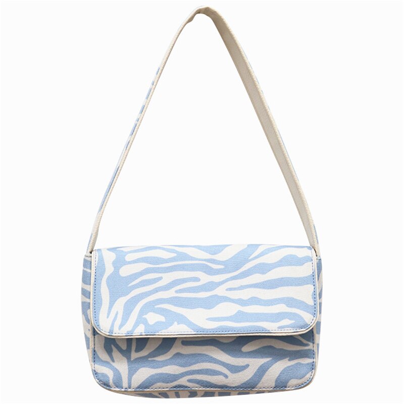 Vintage Design Women Canvas Baguette Handbags Blue Zebra Pattern Ladies Shoulder Bags Fashion Female Small Tote Clutch Purse